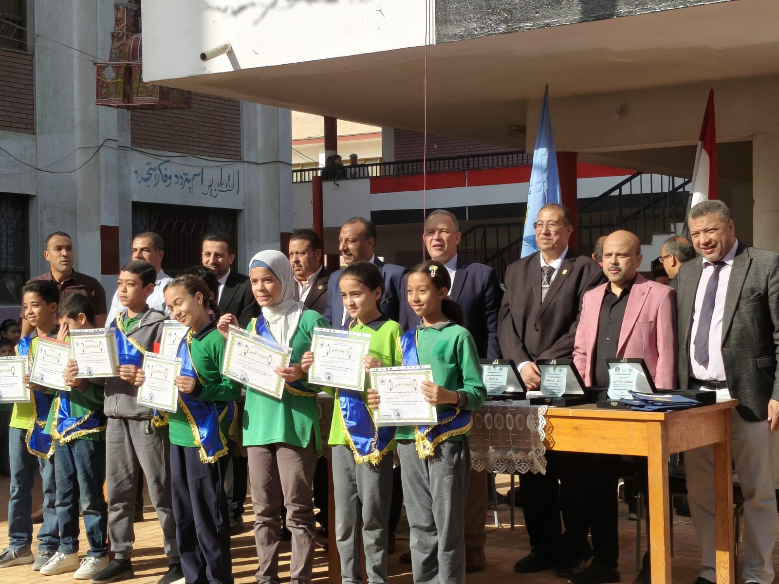 جاء ذلك خلال الحفل الذى أقيم بمدرسة الجامعة الابتدائية الموحدة بحضور سيد الشريف مدير عام الشؤون التنفيذية بالمديرية و طارق الدسوقى مدير إدارة أسيوط التعليمية واحمد حسين وكيل إدارة أسيوط التعليمية وعمرو مصطفى مدير إدارة مدرسة الجامعة الابتدائية الموحدة وبعض أعضاء مجلس الاباء والمعلمين بالمدرسة .