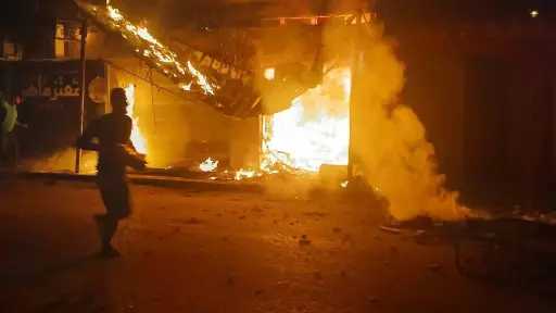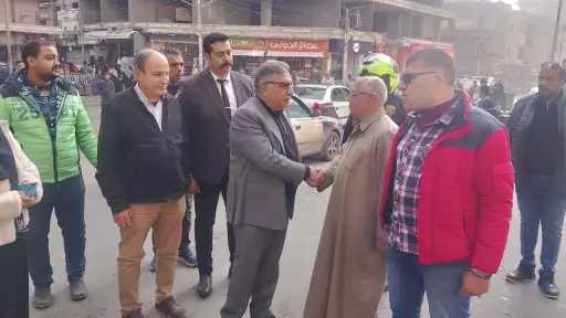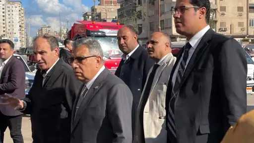 محافظ الدقهلية والقيادات الأمنية يتابعون عمليات السيطرة على حريق سوق الخواجات بالمنصورة