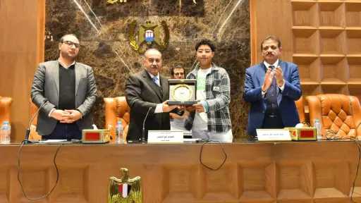 محافظ أسيوط يكرم طالبين لتفوقهما في مسابقات الابتكار والتكنولوجيا محليًا ودوليًا